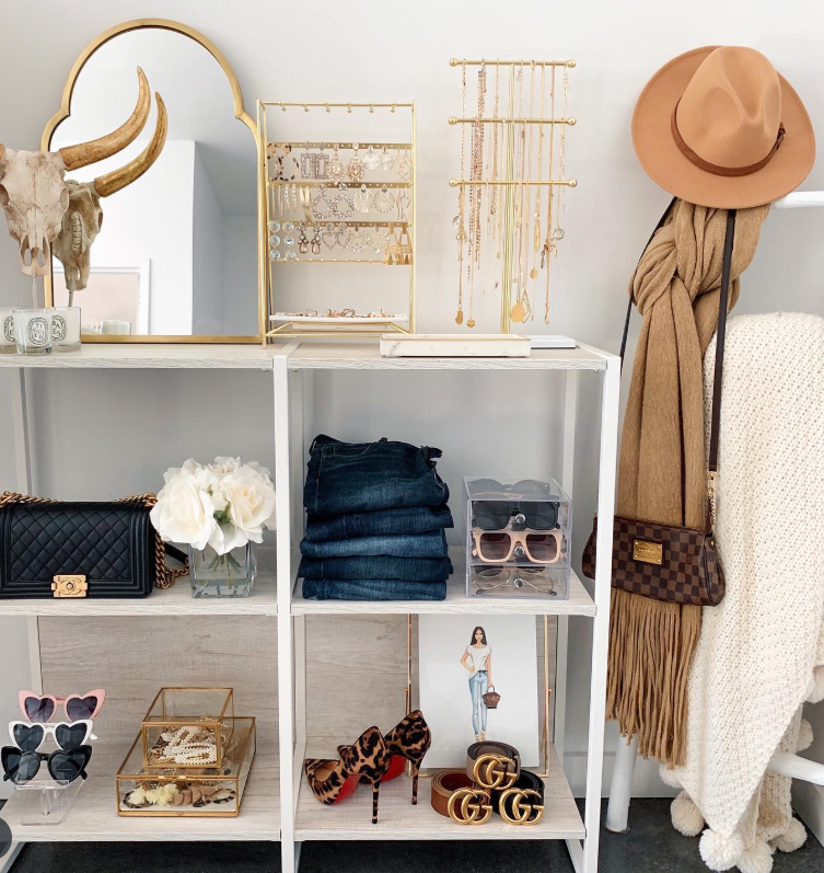 The neutral tones and gold accents make this organization both practical and Instagram-worthy—perfect for small room inspiration.
