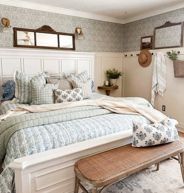 With its calming palette, thoughtful textures, and subtle cottage-core details, this room feels fresh, inviting, and effortlessly cozy.