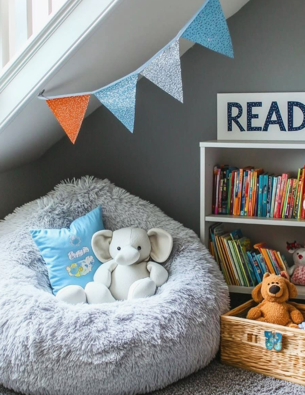 With playful bunting and easy-to-reach books, it’s the perfect cozy corner to spark imagination and encourage a love for reading.