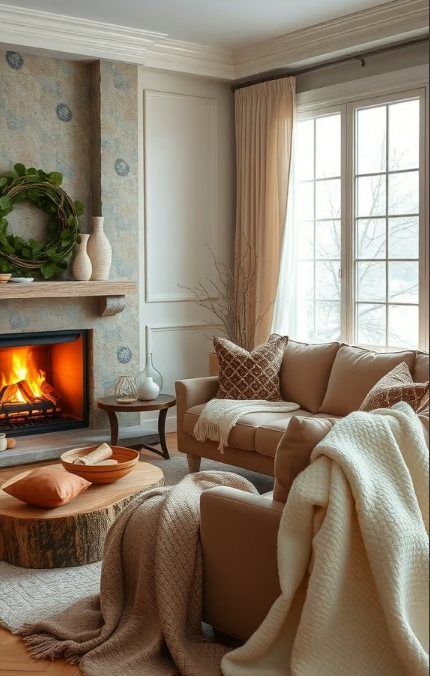 Cozy Living Room with Warm Neutral Winter Accents
