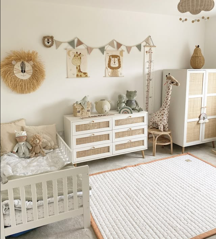 A woven-front dresser offers plenty of hidden storage while keeping the nursery looking neat and stylish.