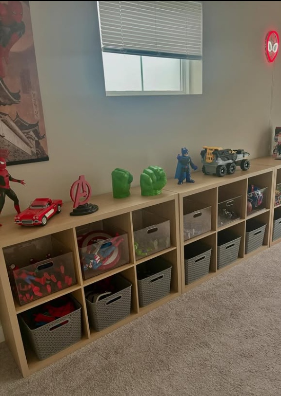This setup makes it simple for kids to toss toys back into their designated spots while keeping the room looking tidy.