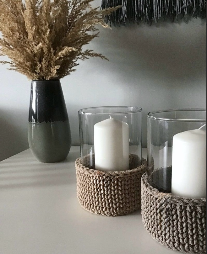 Knit-Wrapped Candle Holders for Soft, Cozy Ambience