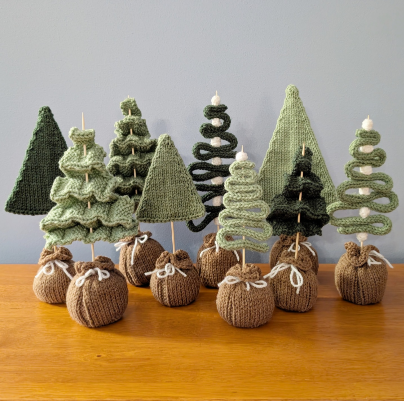 Cozy Knit Mini Trees for Warm Seasonal Styling