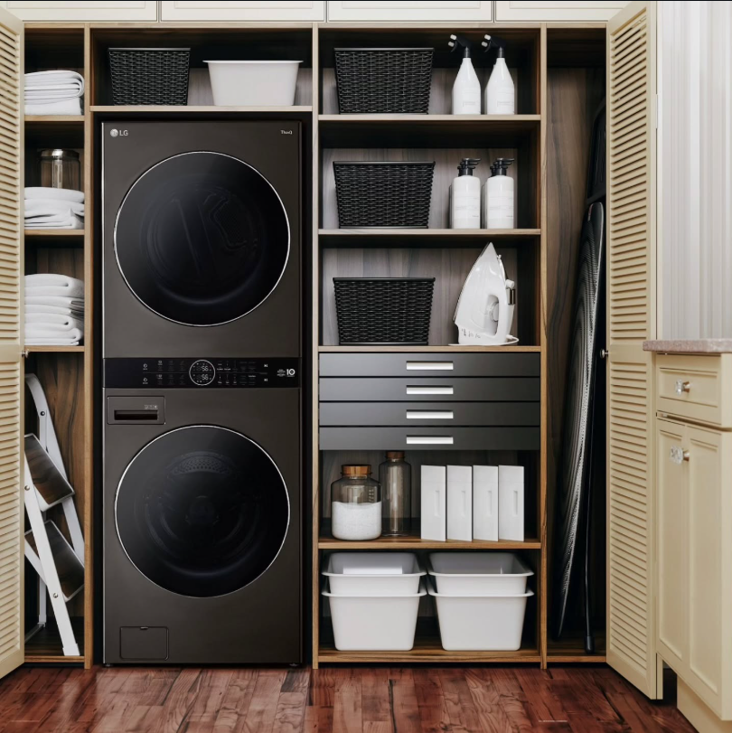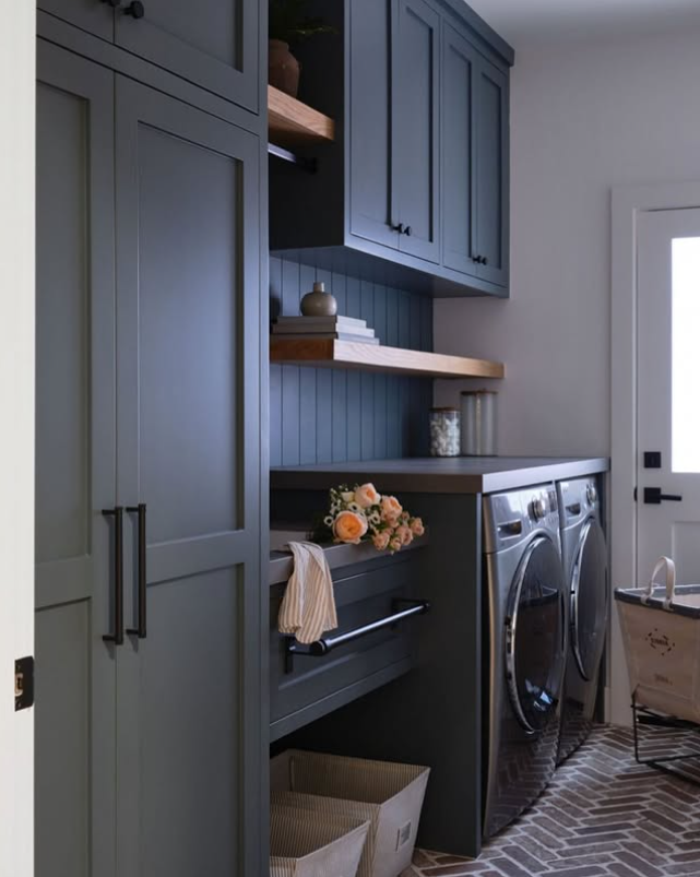 It’s a smart, stylish solution for creating an efficient laundry area that looks polished even with the doors open.
