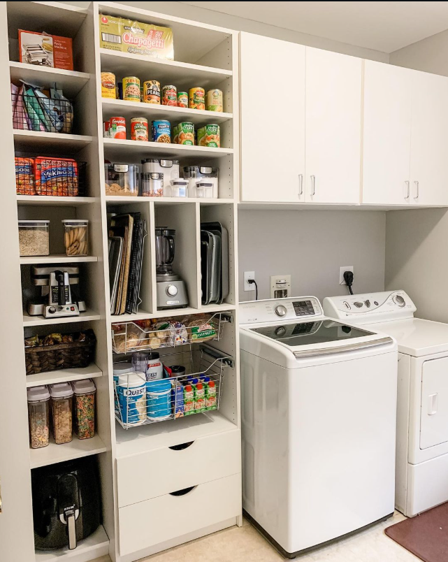 Laundry Room Pantry Combo with Built-In Storage Shelving