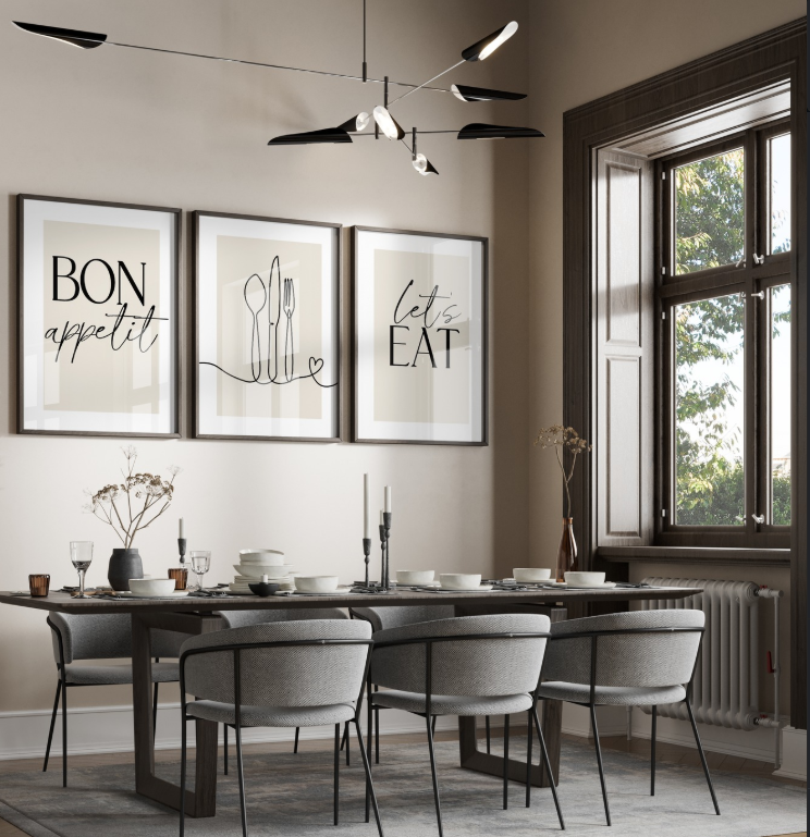 Modern Dining Room Wall Decor with Minimal Typography Art
