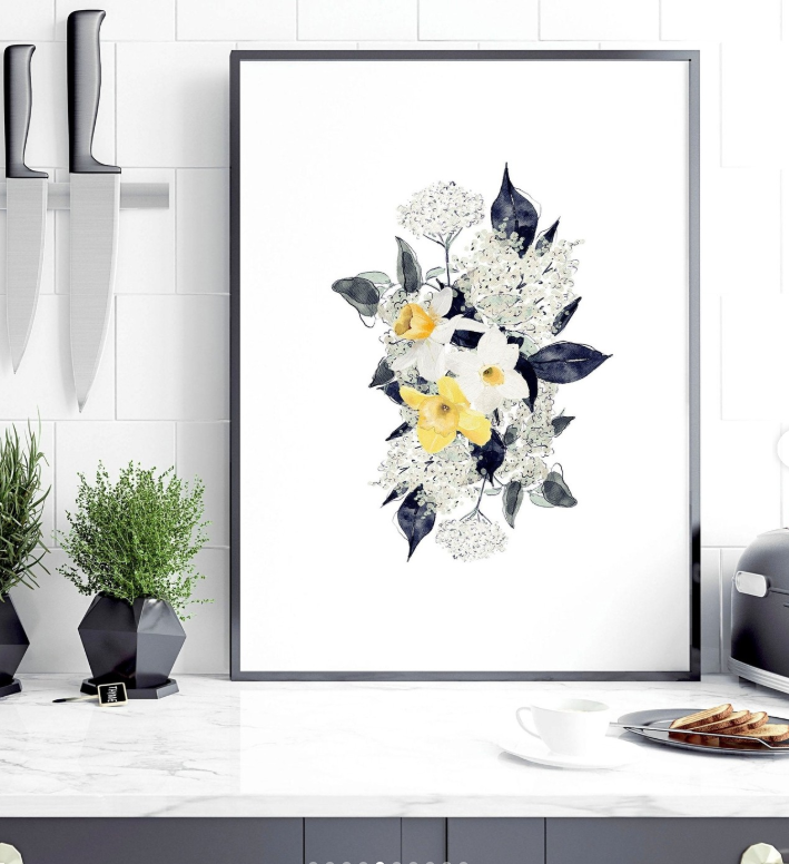Modern Kitchen Wall Decor with Minimal Floral Art
